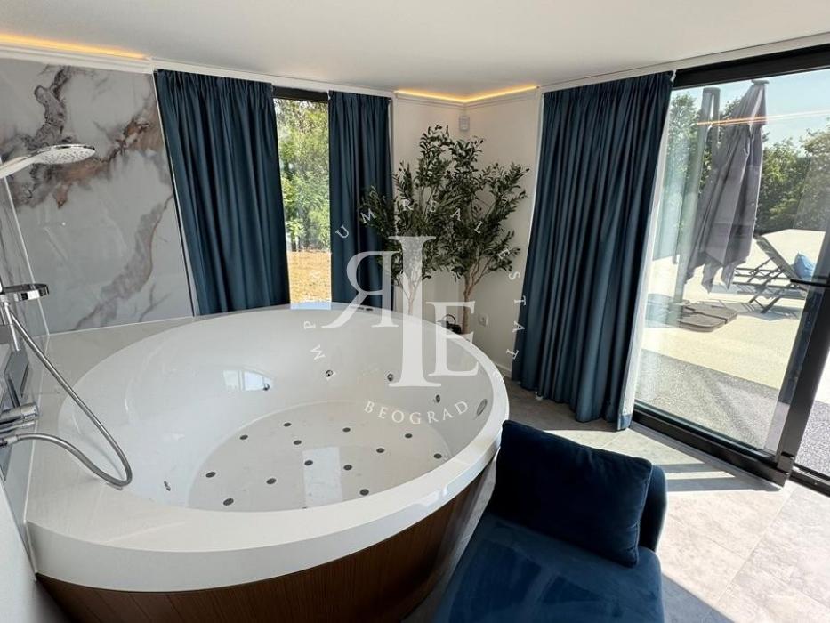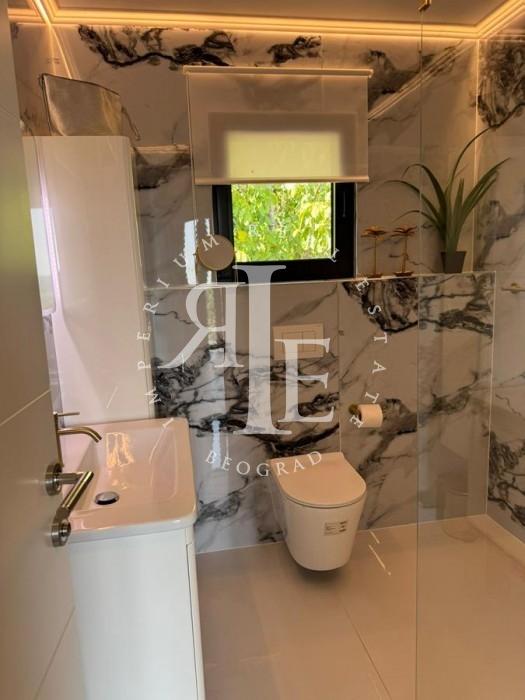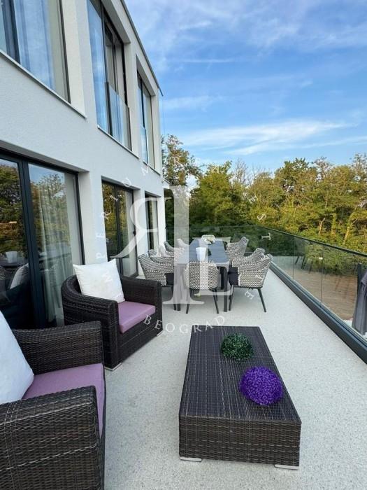 Objekat je spratna novogradnja, vrhunskog kvaliteta gradnje i opremljen luksuznim materijalima: parket, alu stolarija, podno grejanje na toplotne pumpe, jacuzzi kada. Raspored prostorija uključuje tri spavaće sobe, dva kupatila, jedan toalet, dva prostrana dnevna boravka i više terasa, uključujući i krovnu terasu sa fantastičnim panoramskim pogledom.