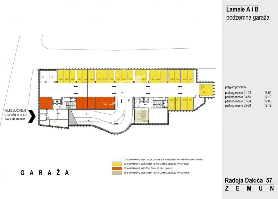 Mogućnost kupovine garažnog mesta sa površinom od 12,19m2.